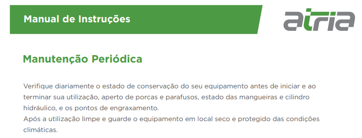 Mesmo com implemento parado, ocioso, é preciso revisar todos os pontos listados no manual, realizando a verificação periódica.